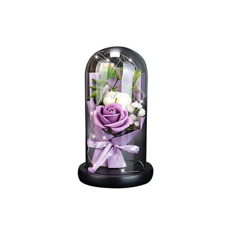 חדש עיצוב יפה וחיה 2PCS מלאכותי משי עלה השתמר נצחי ורדים עם LED אורות זכוכית כיפה
